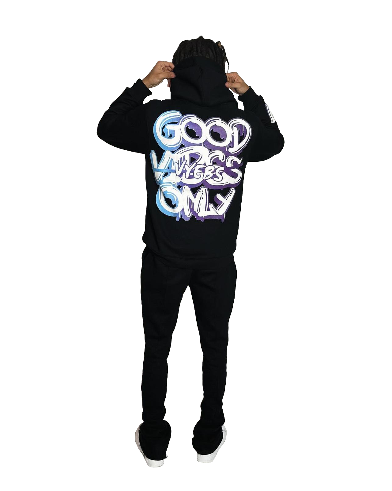 Hoodies fit true to size. Sweats are stacked at bottom ,get your size so the stacked look doesn’t look to baggy at bottom. Both come with tags. Front pocket on hoodie . pockets on pants. both come with draw strings . printed logo on front nd back of hoodie , nd right arm sleeve sweats printed logo on left side of sweats near pocket. custom tag on left wrist. model is 5”11 130lbs wearing a small. Fleece (80/20 Cotton Polyester blend). Low shrinkage. Lint free. |